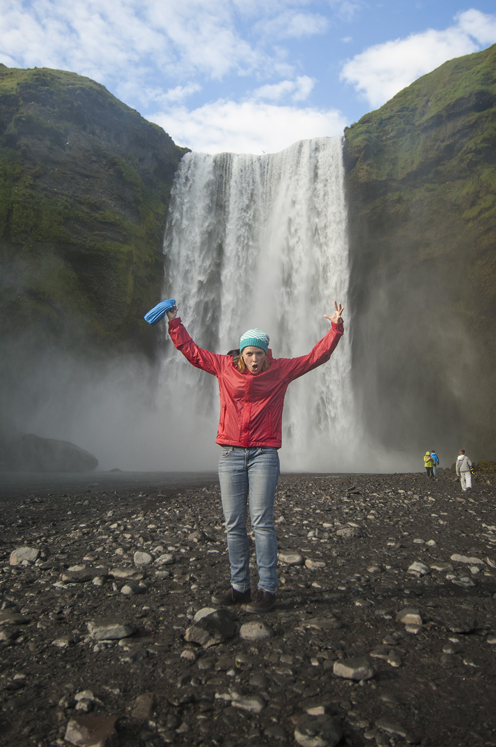 On a donc repris la route et plusieurs trucs étaient sur notre chemin. On a fait un premier stop à Seljalansfoss. (Ce qui fini par «foss» = une chute). Une magnifique chute, ainsi que deux autres petites. On est ressorti de là trempés!