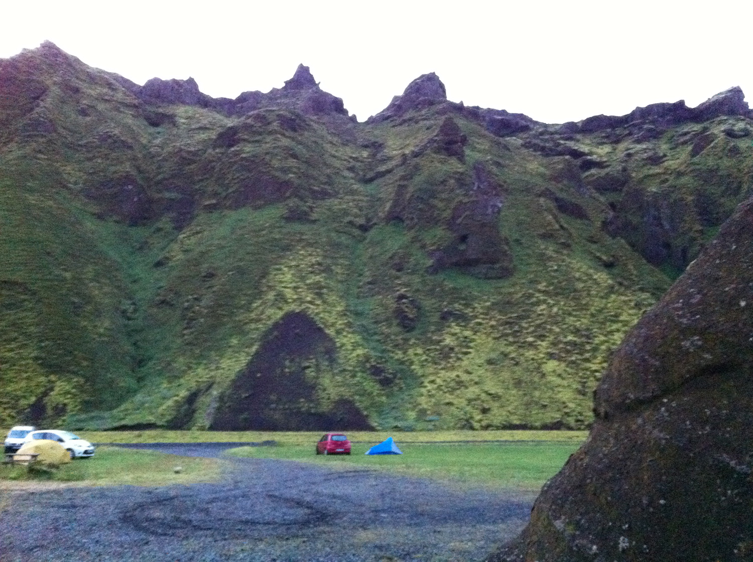 Présentement, il est 00h42, PM a monté la tente pendant que j’écrivais le post et maintenant il nous prépare un feu dans le BBQ (dans une grotte) parce qu’avec tout ça, on a pas encore souper! 😛 Avec la noirceur qui ne tombe jamais et toute la route à faire et les choses qu’on peut voir dans une journée, on oublie qu’il faut s’arrêter, manger et dormir. Mais on ne semble pas être les seuls… Dans le camping, je vois en ce moment un petit bonhomme jouer au ballon avec ses parents, d’autres campers qui se font de la bouffe avec de la grosse musique. Bref, on est normal!