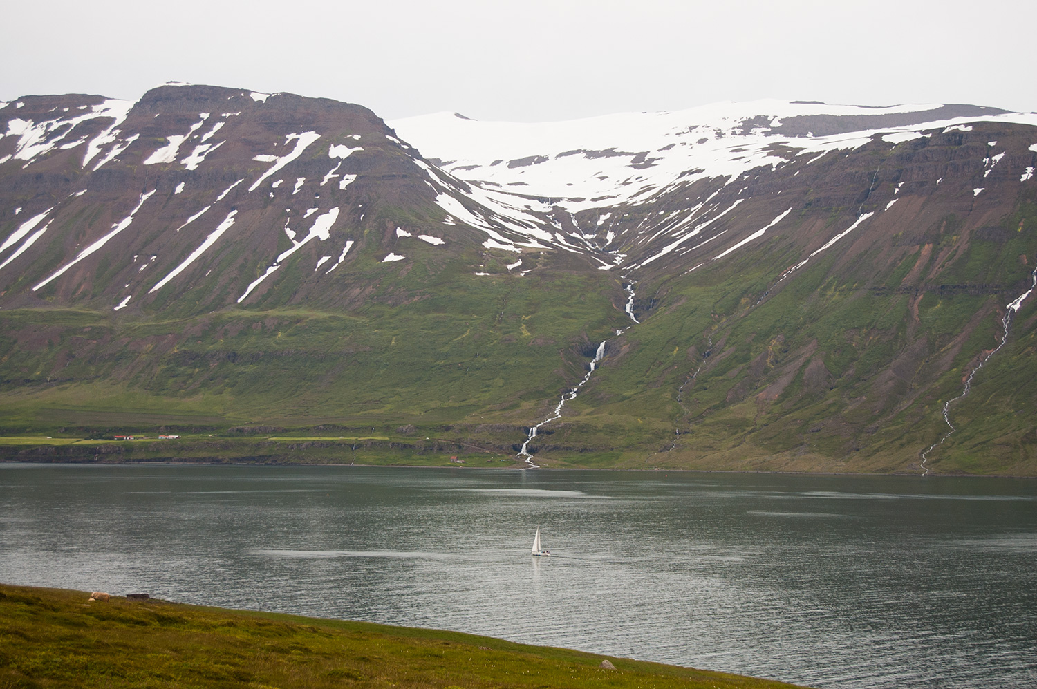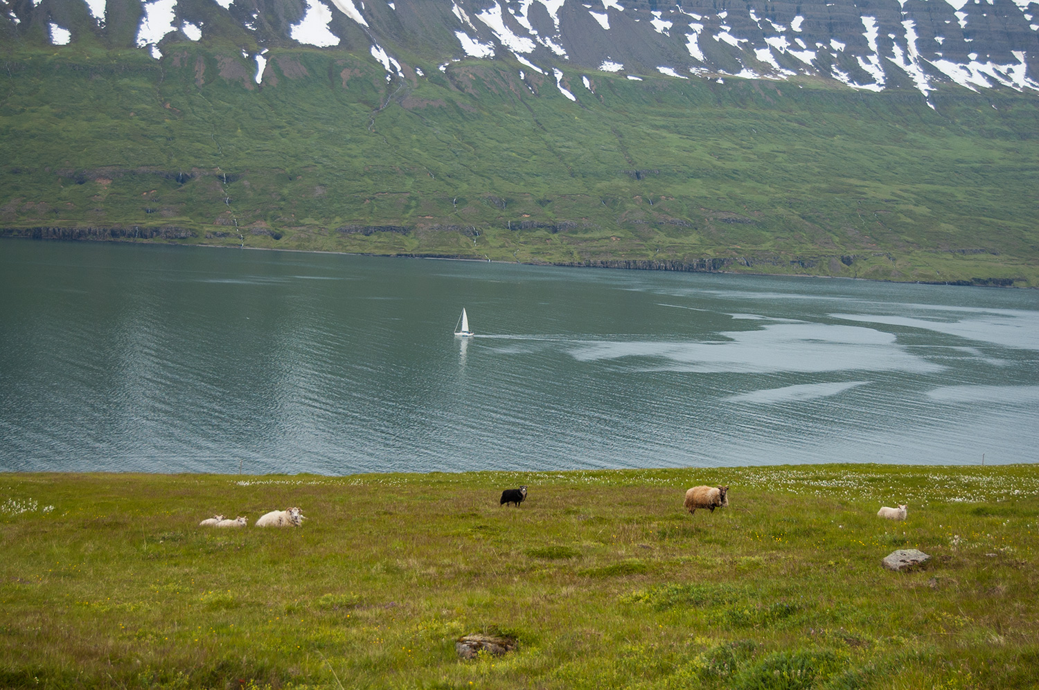 8h, le réveil sonne. Même si on s’est couché tard, on s’était dit qu’on allait essayé de se lever plutôt pour profiter plus du vrai ensoleillement d’une journée. Finalement, on quitte Reyðarfjörður à 9h30 vers Egilsstaðir.