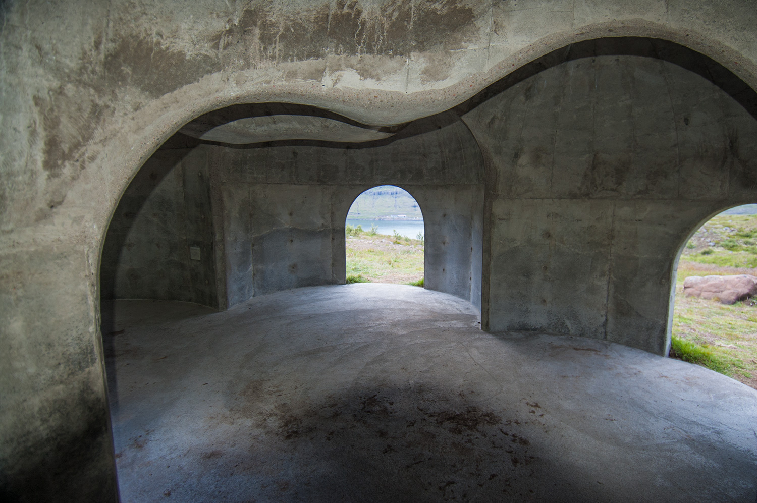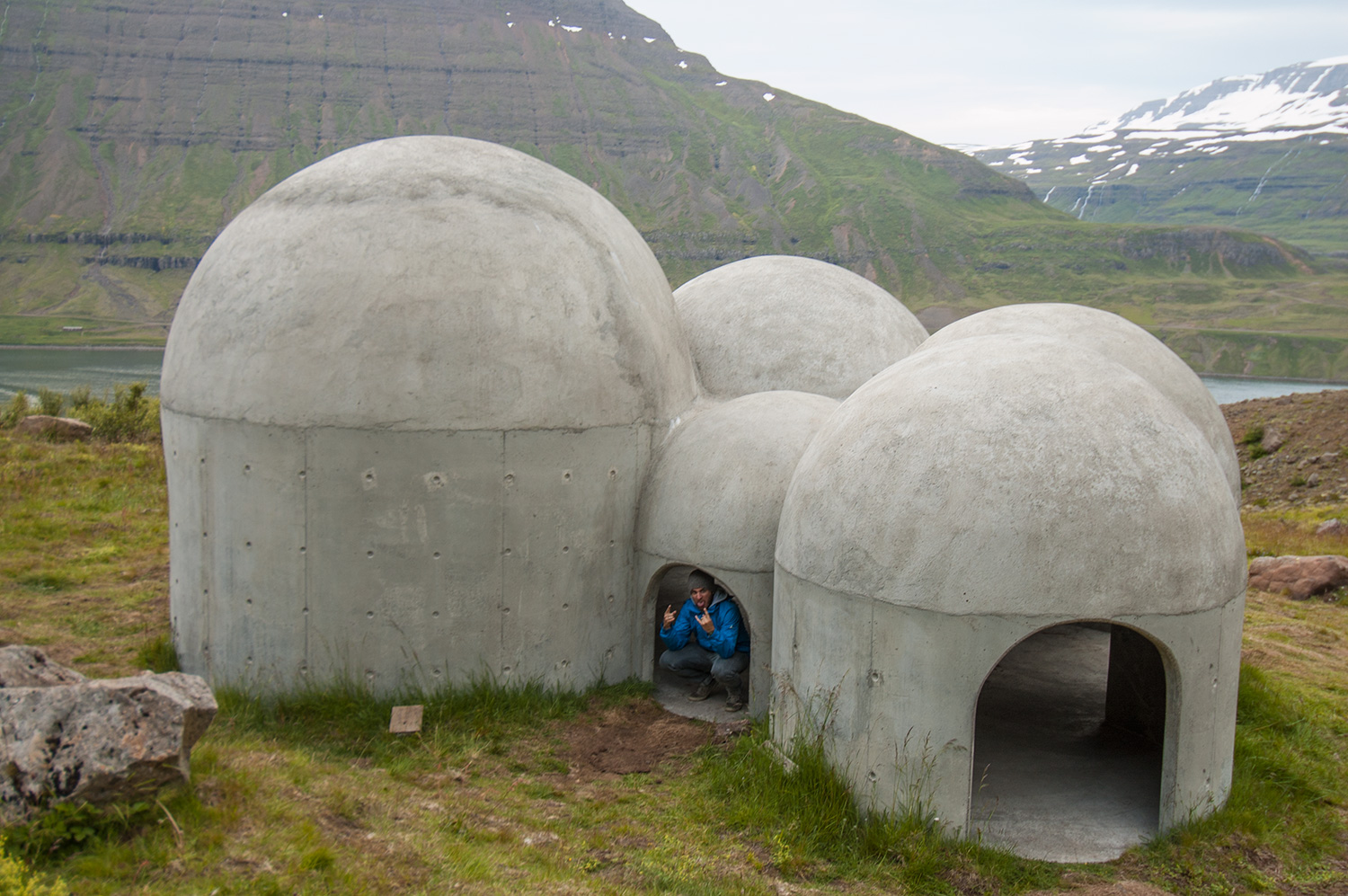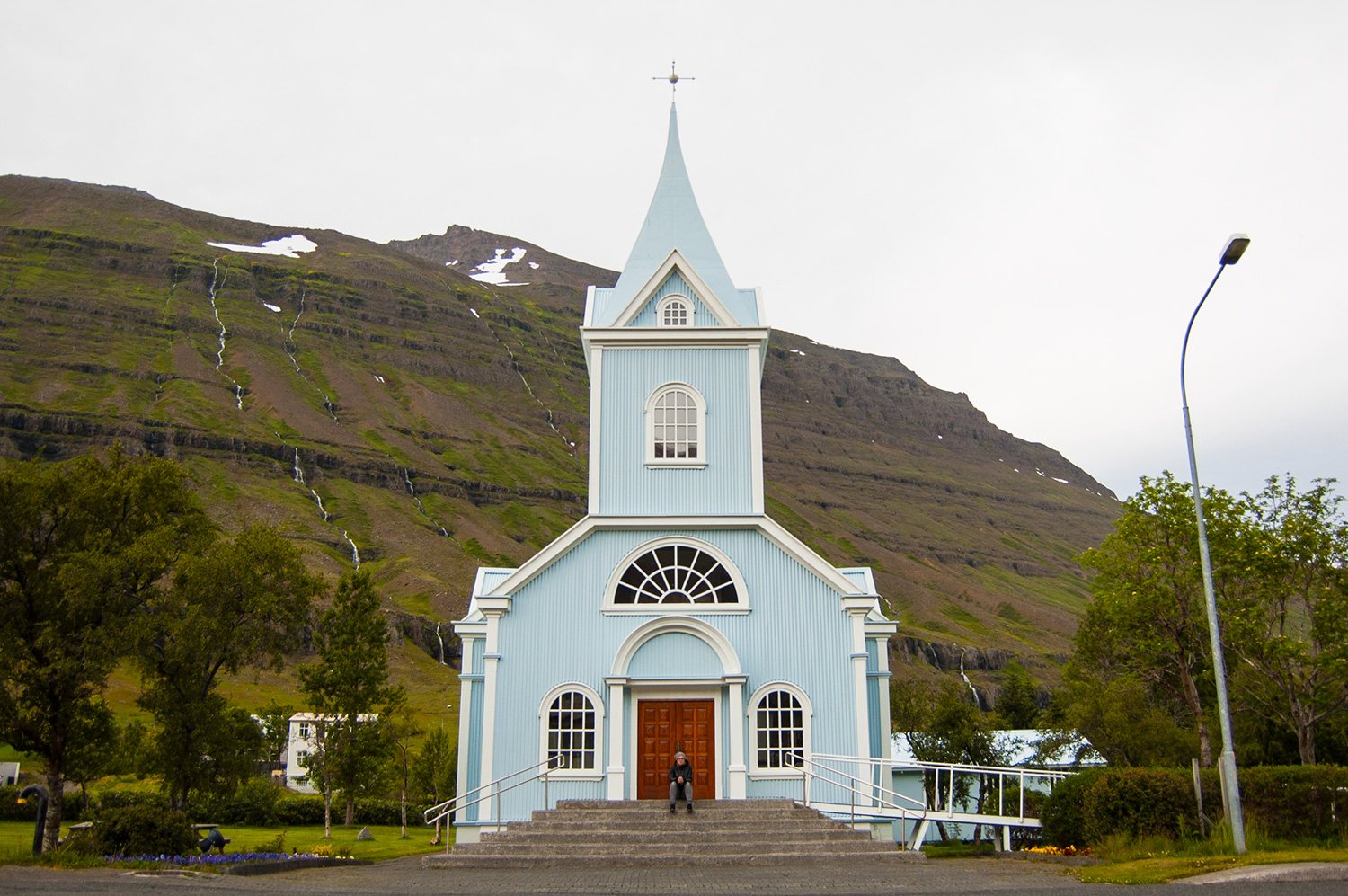 C’est à Seyðisfjörður que ce trouvait le premier point qu’on allait visiter. Ce n’est pas sans avoir été vérifier sur internet du lieu exacte qu’on a repéré la petite église bleue pâle devant laquelle ils ont joué. C’était spécial pour moi de m’y trouver et de m’imaginer leur set up. Ça dû être tout un show!