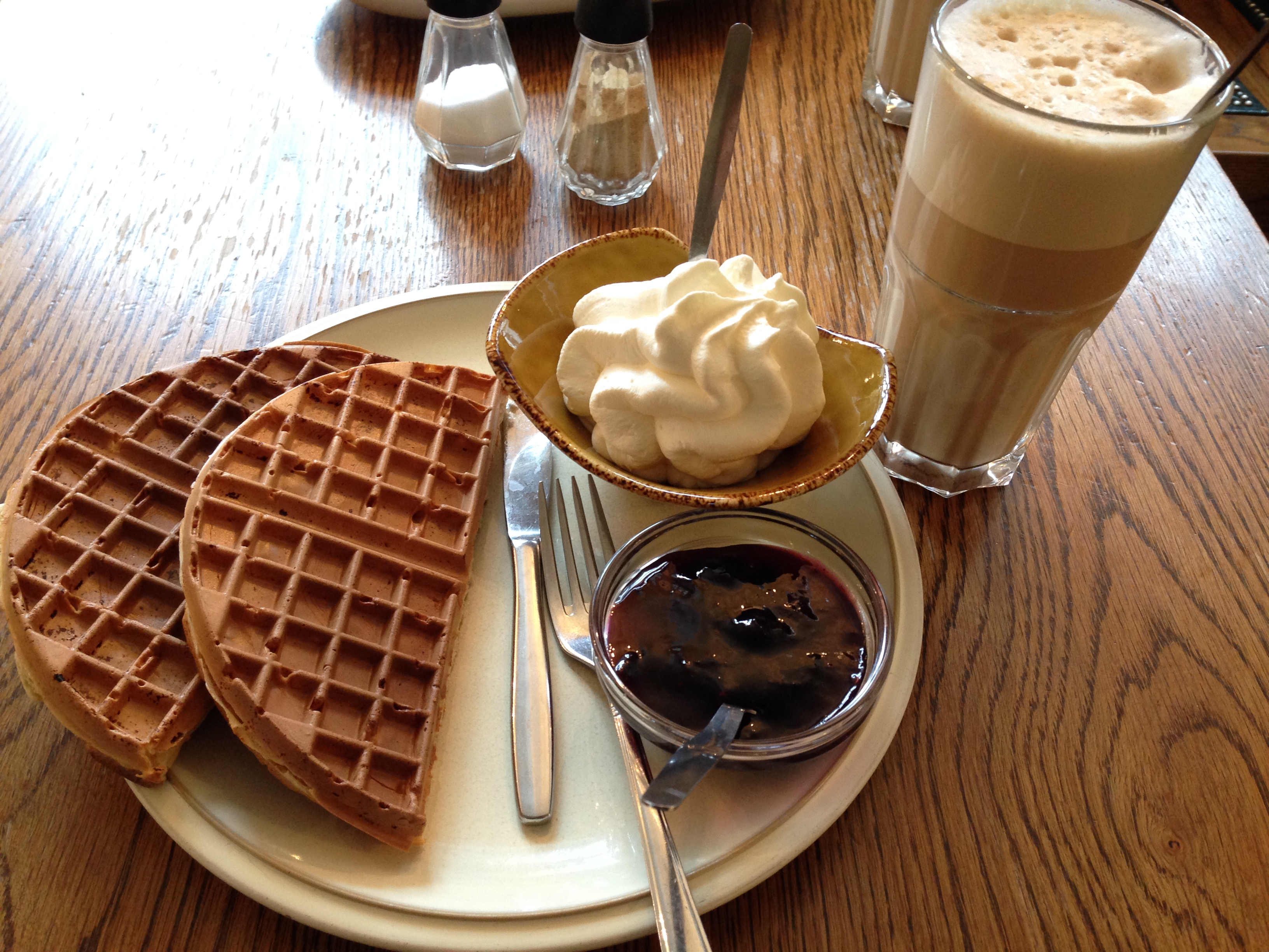 On s’est arrêté au Gamli Bistro pour se bourrer la face dans les gauffres et la crème fouettée et dans le gâteau au fromage et bleuet. Un délice!