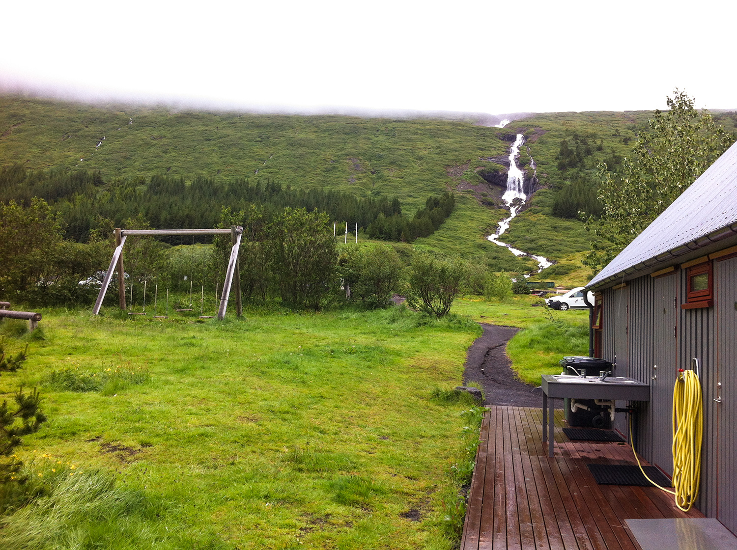 Au moins, il ne pleut pas et nous avons le son ambiant d’une jolie chute d’eau tout près de notre tente. D’après moi, on va bien dormir.