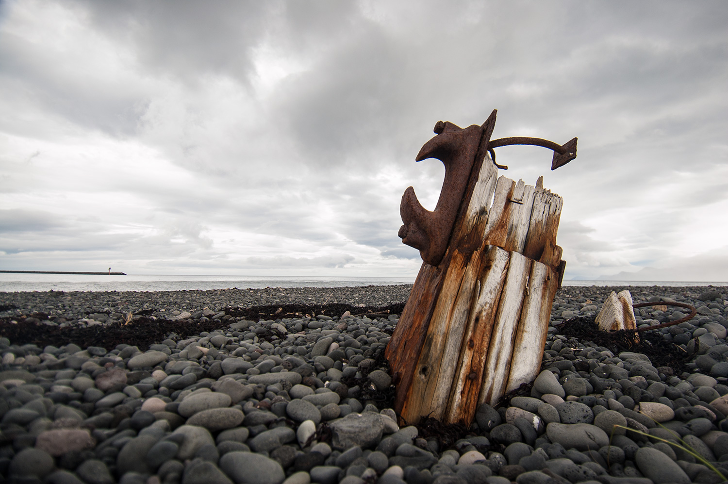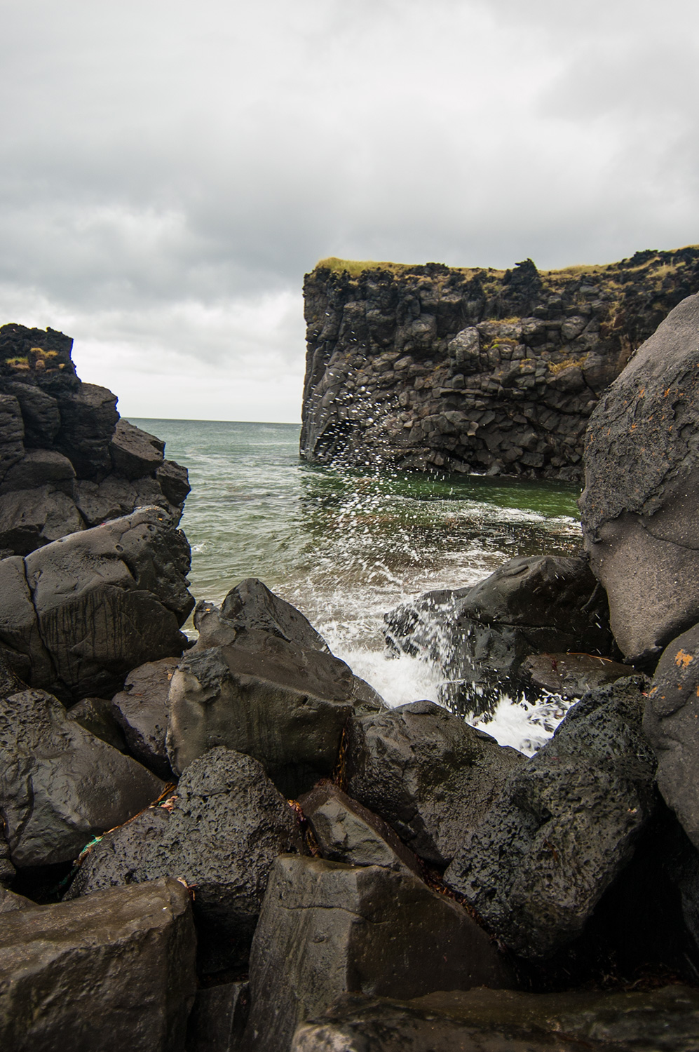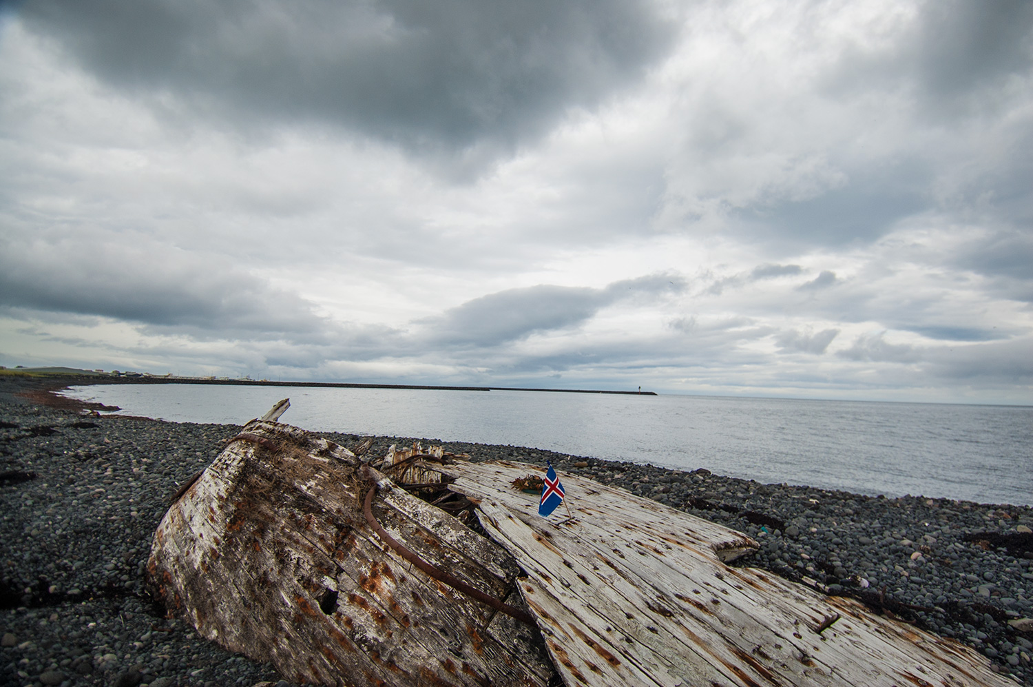 Ólafsvík. Belle petite ville où Sigur Rós a aussi donné un concert. Sauf qu’on a aucune idée d’où exactement. On sait que c’était à l’intérieur d’un gymnase avec des rideaux bleus. On sait aussi qu’il semble avoir une plage de sable noir dans les environs mais probablement qu’aujourd’hui, la marée est trop haute. On se promène tout de même un peu sur le bord de l’eau… Histoire de bien sentir le poisson pas frais.